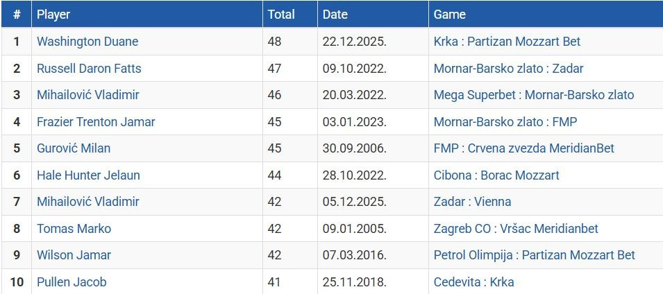 Nedavno je na utakmici protiv Krke oborio rekord ABA lige postigavši 48 poena, a sa ovim učinkom je stigao i na deobu 12. pozicije Partizanove večne liste strelaca na jednoj utakmici. Osim toga, u Ljubljani je sa deset pogođenih trojki oborio klupski rekord u ABA ligi, a ko zna, moguće i u kompletnoj istoriji.