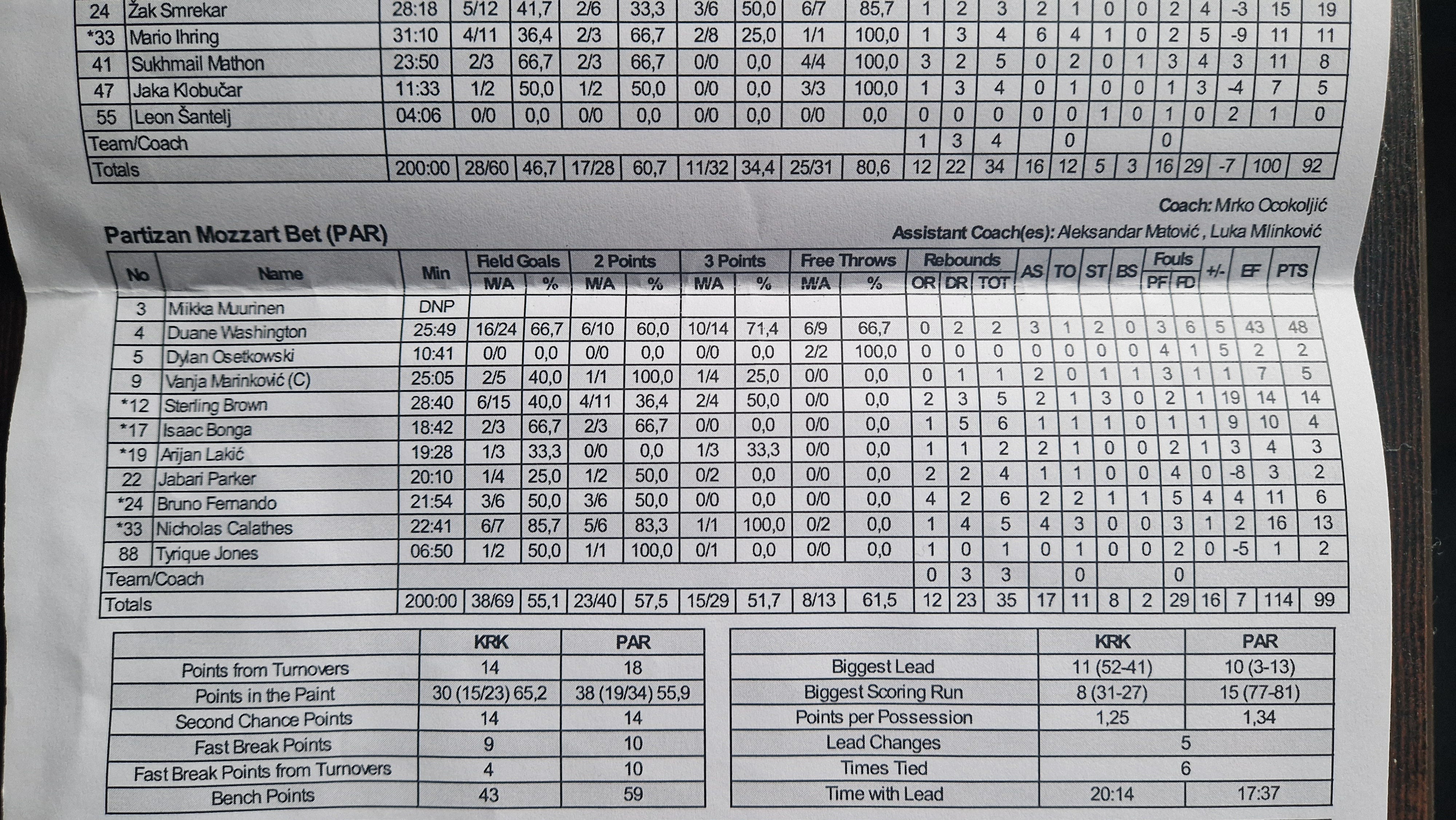 Iz priloženog se može zaključiti da je Partizan daleko bolja ekipa sa Carlikom ili Payneom u petorci, a bez Washingtona, nego što je sa Washingtonom, a bez nekoga od njih dvojice.